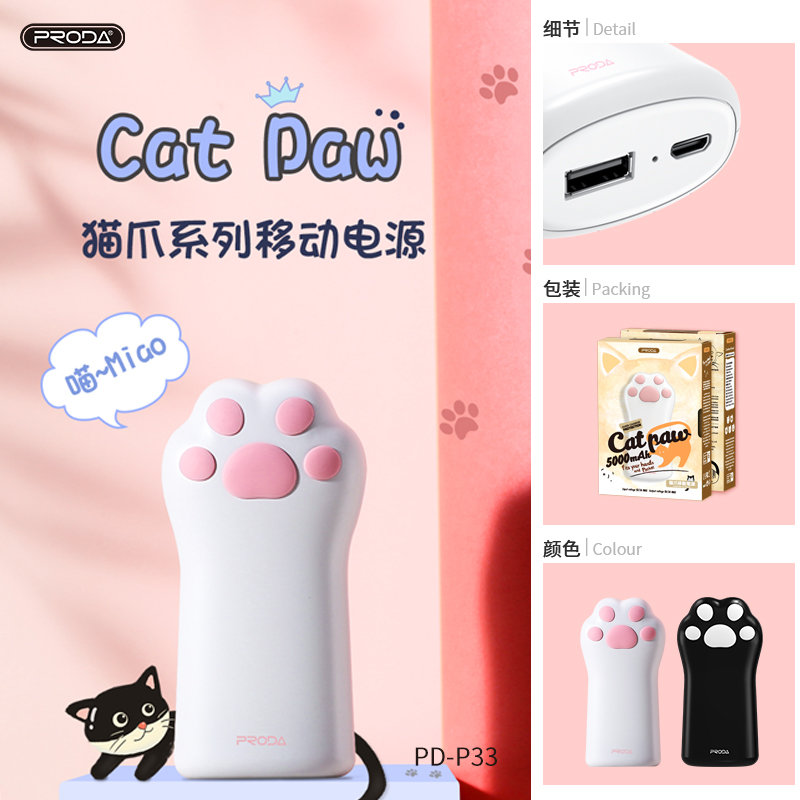 Портативный аккумулятор 5000 мАч, PRODA PD-P33 CAT PAW, White***